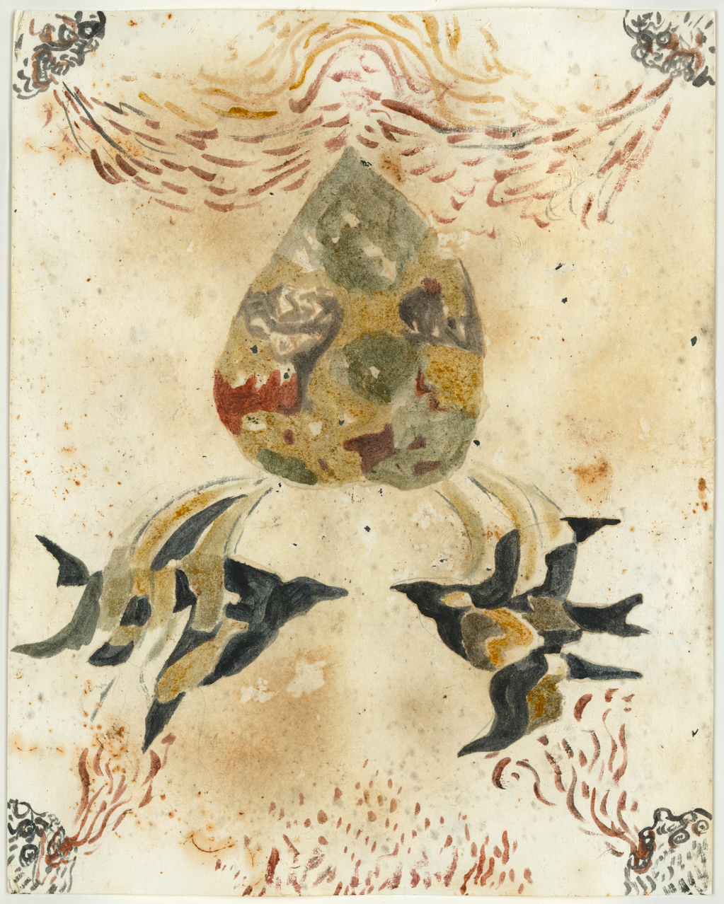 - Parasitic wasp and oak gall ink and turmeric on cotton rag blotting paper with plant remnants