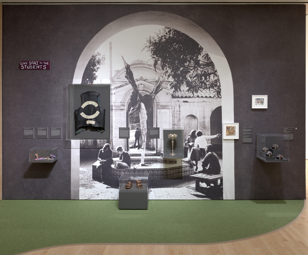 In addition to the artists above, former SFAI faculty members such as JD Beltran, Angela Davis, George Kuchar, and more are represented in the archival materials featured in the exhibition and the adjacent interpretive gallery Art in Your Life.
