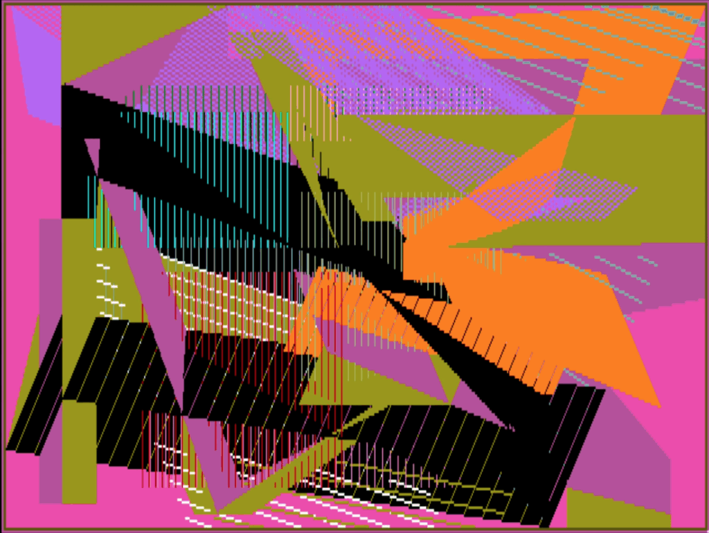 A prolific painter and pioneer in digital art, Samia Halaby has been exploring the visual language of abstraction for over six decades. The artist’s dynamic painting compositions investigate how we perceive the moving world through the interplay of textures, surfaces, color, and light. This direction emerged out of her love and study of early 20th century abstraction as in Cubism, Futurism, and Constructivism wherein time emerged as a new dimension in pictures. Halaby’s explorations in computer programming led to abstractions in motion. After purchasing a Commodore Amiga 1000 in 1986, she taught herself how to code in computing language BASIC and C for creating what she calls “kinetic paintings”. Combinations of numbers became her color palette, and marks on a canvas turned into illuminated pixels on a screen. Lines and shapes are no longer static planes in this expanded form of picture making. They can sprout with growth and change captured over time on a computer surface with endless depth, akin to the living and generative characteristics of nature.