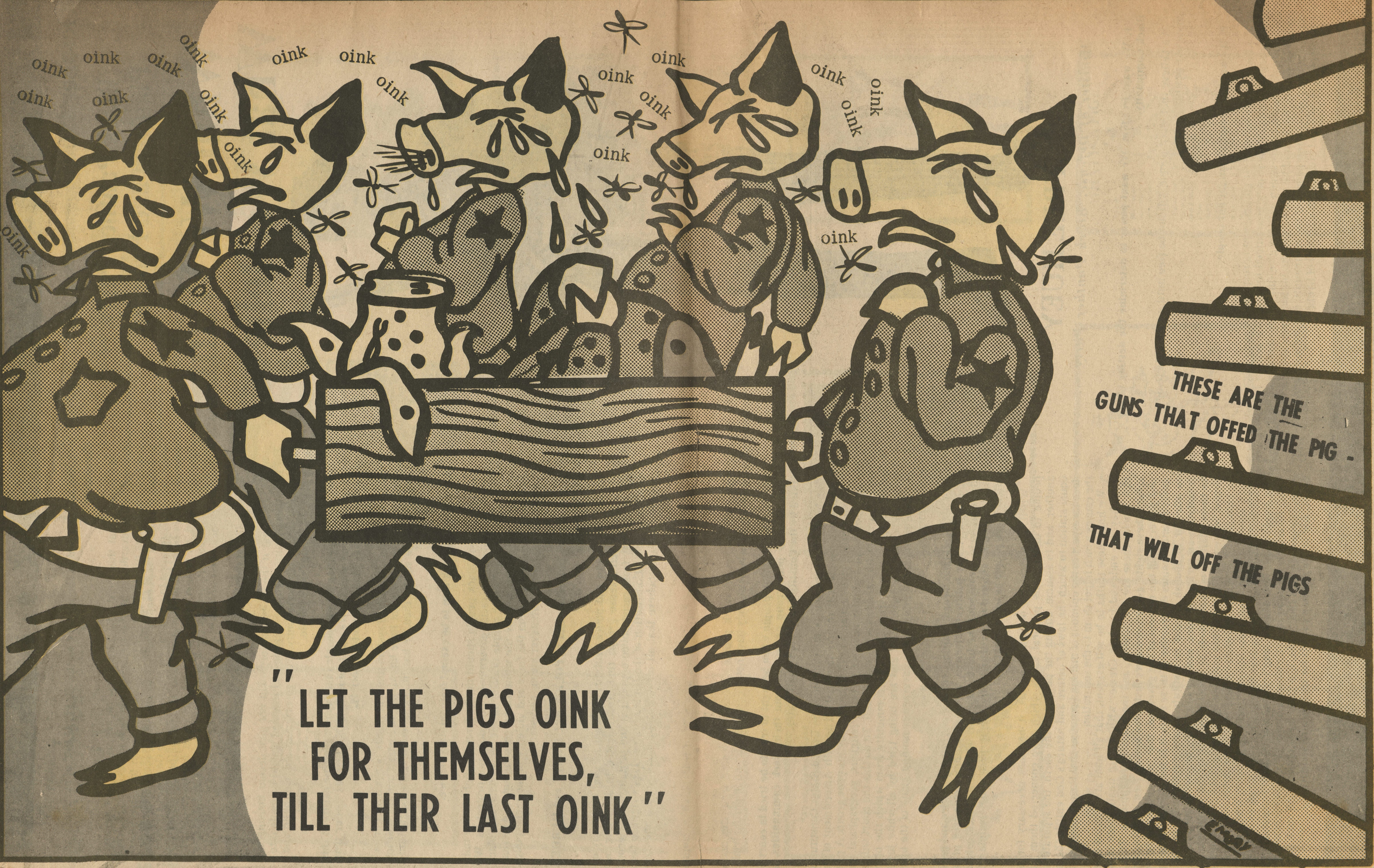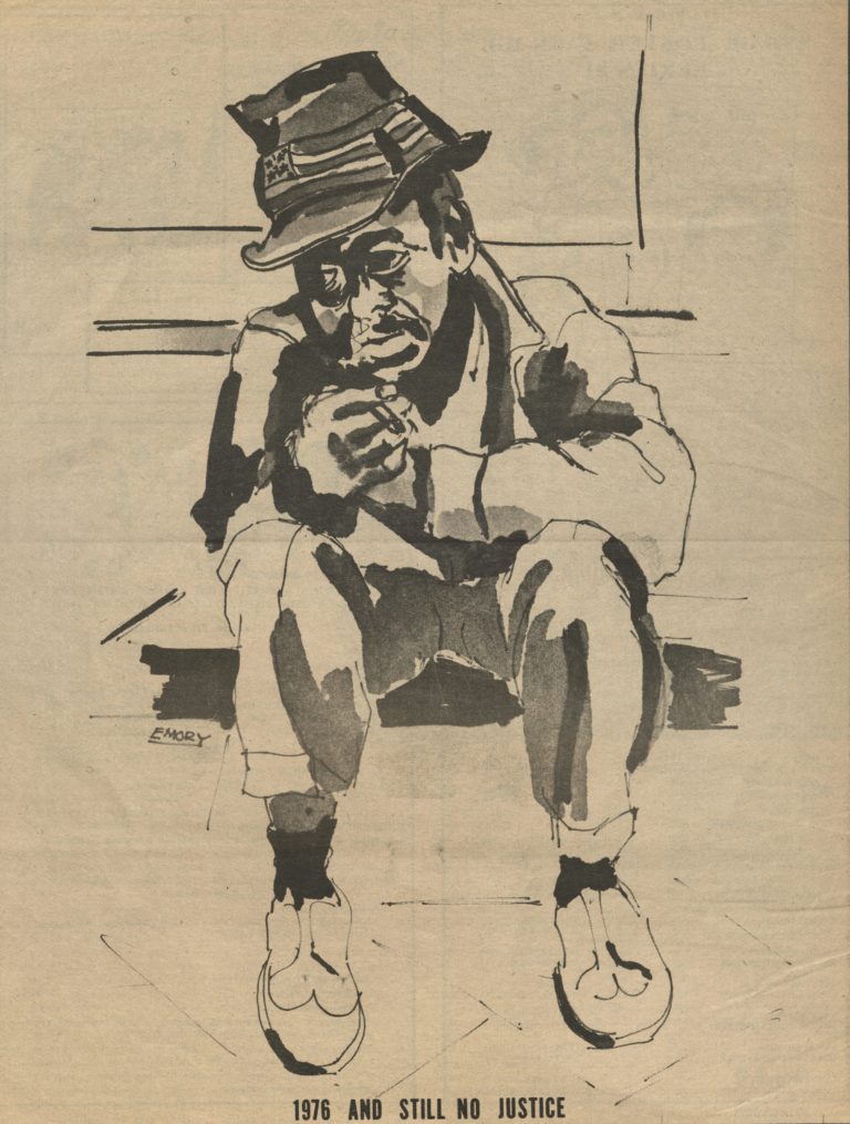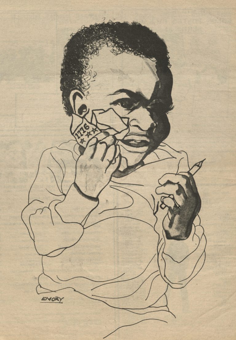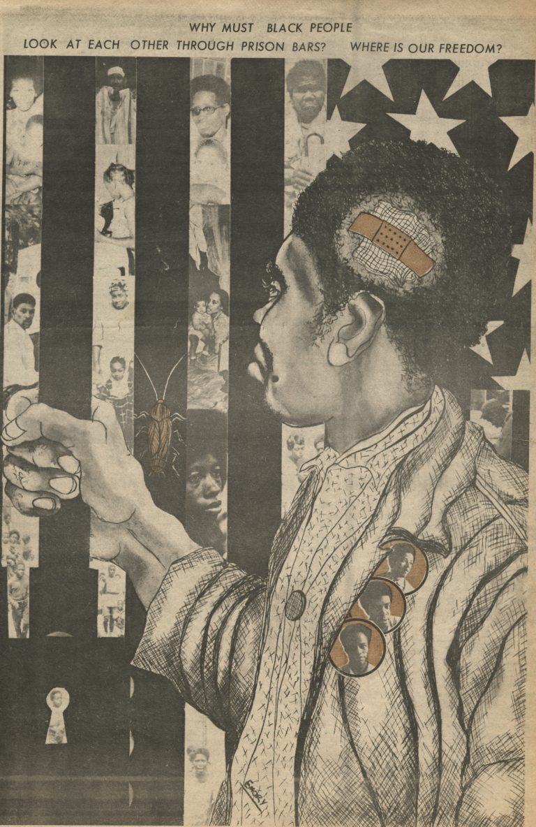 Emory Douglas has been harnessing graphic art as a form of social justice for more than fifty years. Douglas learned graphic design at the City College of San Francisco and later worked as a commercial artist. In 1967, he became the Revolutionary Artist and then Minister of Culture for the Black Panther Party and developed the design of the Black Panther newspaper. There, Douglas began featuring more graphic elements, including his illustrations and collages alongside the paper’s reporting on current events and party ideology. Douglas depicted issues faced by Black Americans that were central to the party’s Ten Point Platform and Program, spotlighting abuse and killing by police, incarceration, the right to self-defense, inequalities of the justice system, and solidarity with social justice organizations and international human rights movements. Using the simple tools of paste-up production, Douglas developed an accessible and provocative visual language that has inspired generations of politically engaged artists throughout the world.